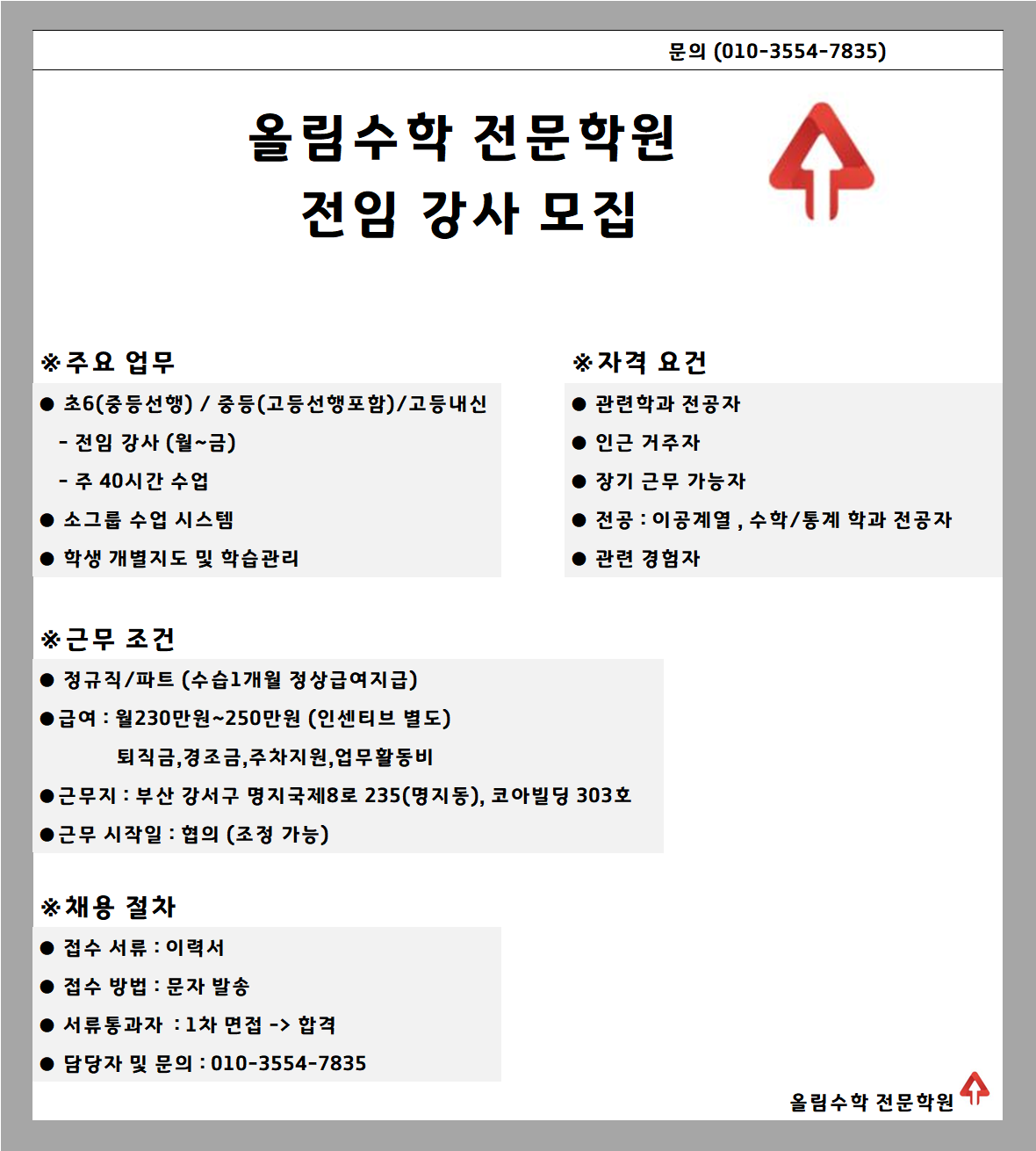 생각하는황소 센텀학원에서 채점알바, 미션지도알바 구합니다.
